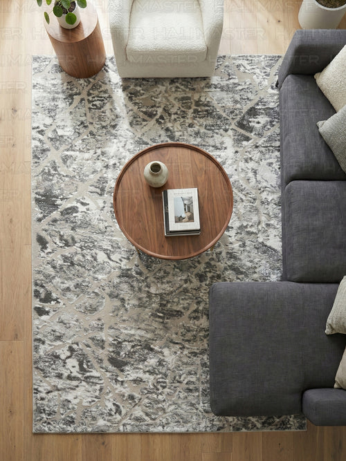 Akrilik Modern Geometrik Desenli Gri Halı – Özel Ölçü Salon & Antre Halısı