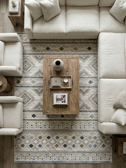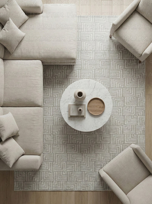 Akrilik Krem Bej Geometrik Desenli Modern Salon & Antre Halısı | Özel Ölçü